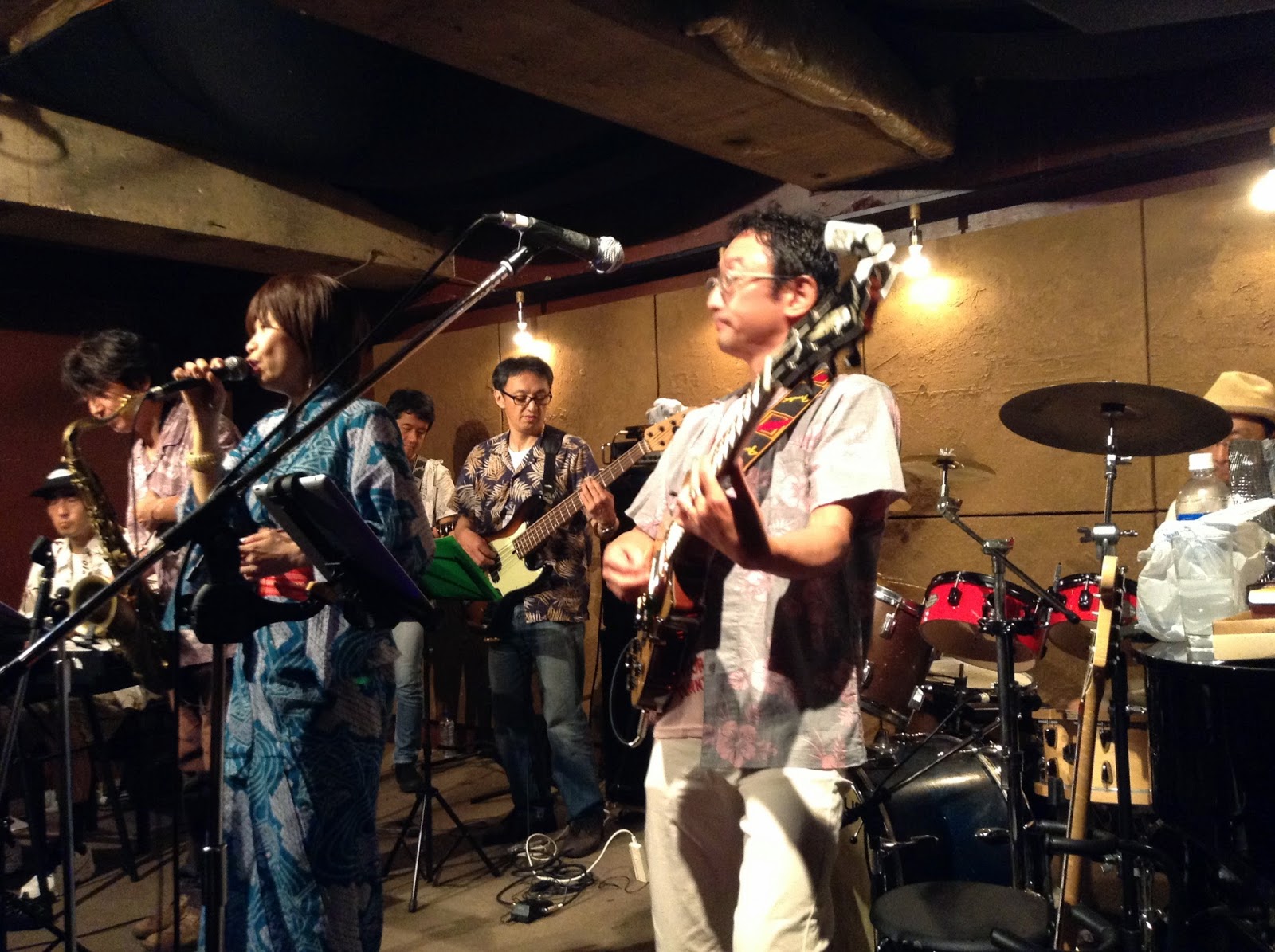 8月1日(金)ボイトレ道場のK先生とオガポンのツインボーカルで、大学サークル後輩のドラマーキングKと同じくベーシストの大王Tパワフルらが参加するプロのバンド